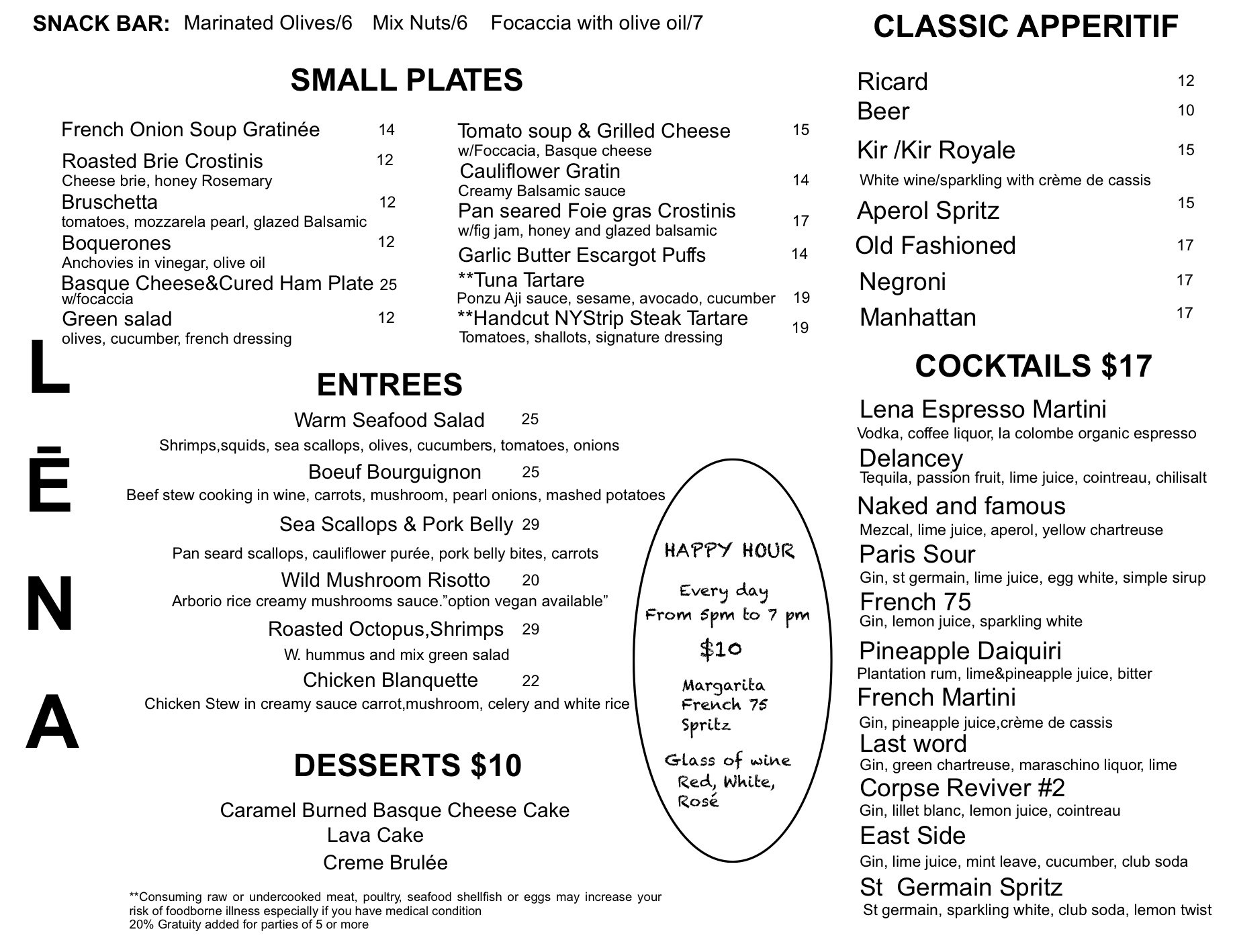 Lower East Side Menu