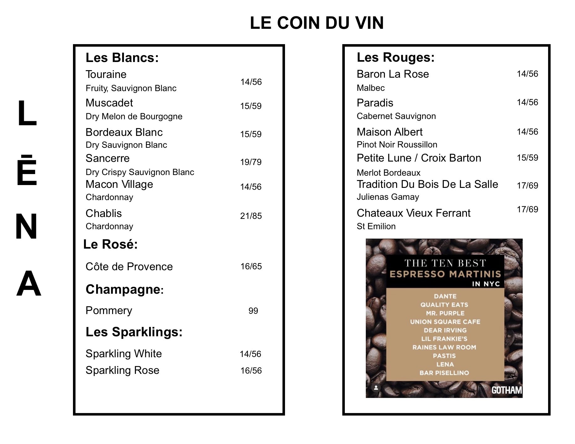 West Village Menu